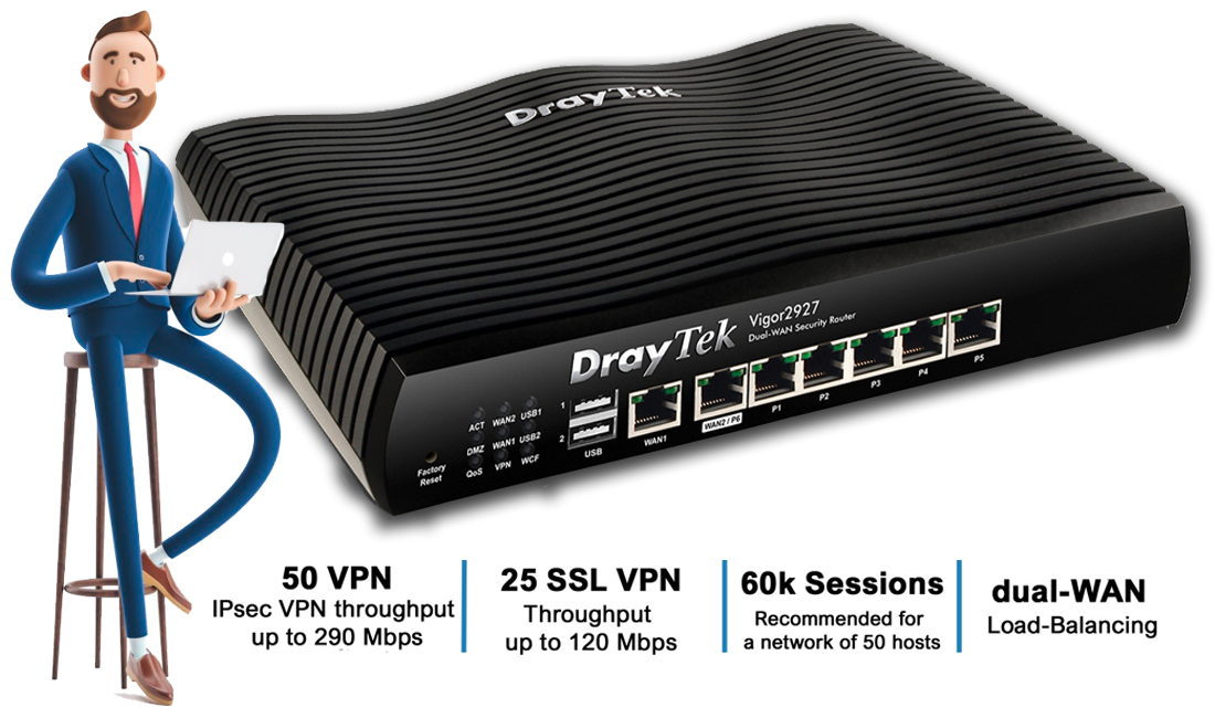 استخدم جهاز توجيه سلسلة Vigor2927 كوحدة تحكم لاسلكية لصيانة ومراقبة أجهزة VigorAPs. -تعلم أكثــر