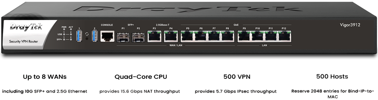 استخدم جهاز توجيه سلسلة Vigor3912 كوحدة تحكم لاسلكية لصيانة ومراقبة أجهزة VigorAPs. -تعلم أكثــر