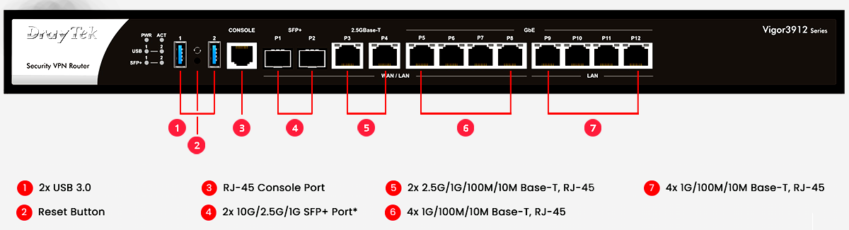 يوفر 2 منافذ SFP للألياف البصرية قادرة على سرعة 10 جيجابت للاتصال بالشبكة الواسعة أو المحلية.